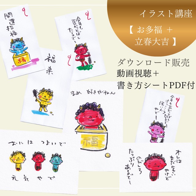 開運イラスト講座【お多福+立春大吉】【録画動画視聴+書き方シートPDF】