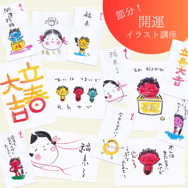 開運イラスト講座【1/7お多福・立春大吉】【1/27鬼の子】