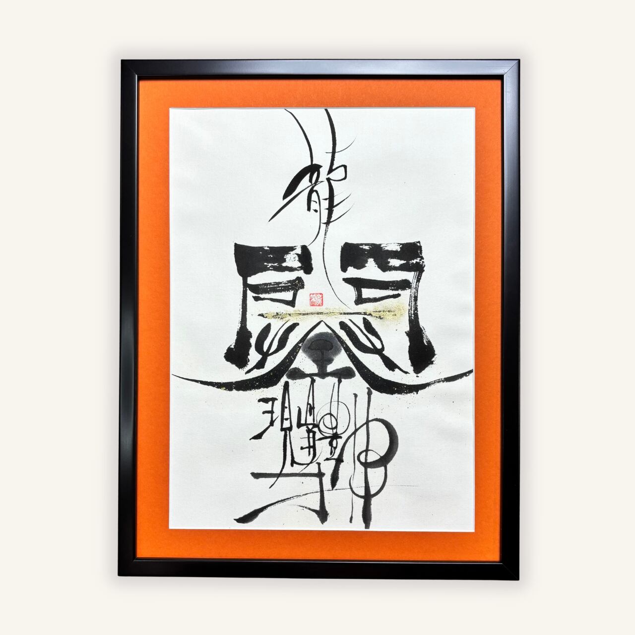 (画仙紙、墨、金彩) 395 mm× 305 mm 黒縁額