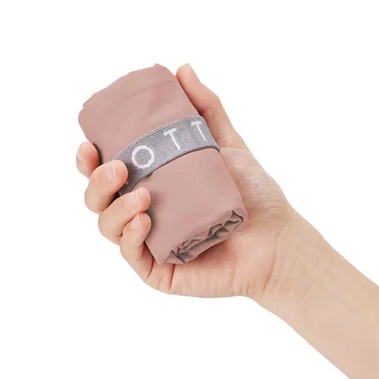 バッグの入り口に付いているゴムバンドで留めると、手のひらにおさまるコンパクトサイズになるのでサブバッグやエコバッグにぴったり。