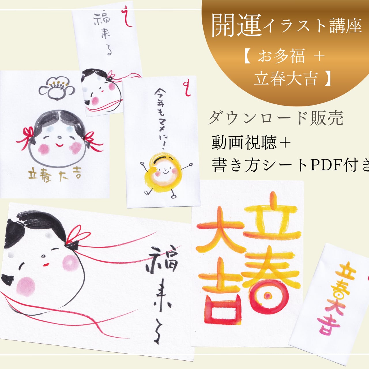 開運イラスト講座【お多福+立春大吉】【録画動画視聴+書き方シートPDF】